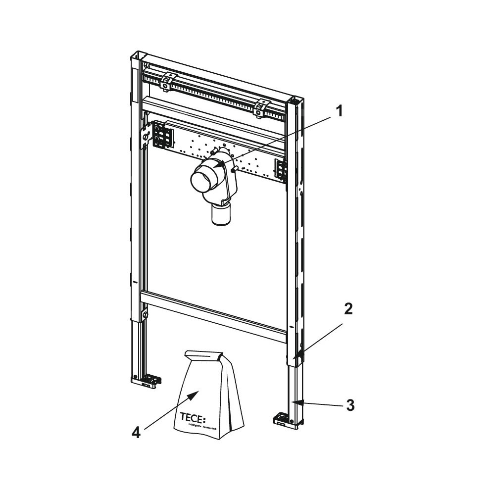 Stelaż montażowy pod umywalkę do mocowania na kształtownikach stalowych TECEprofil lub do montażu w ścianach z profili metalowych lub drewnianych oraz jako ścianka przednia lub moduł narożnikowy. Do montażu umywalek podbudowanych, zgodnie z DIN 18040 – 1 (budownictwo bez barier – część 1: budynki dostępne publicznie)