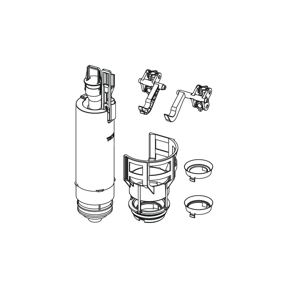 Do standardowych spłuczek TECE (głębokość montażowa 13 cm), z gniazdem zaworu, tulejami kryzującymi fi 36 i 42 mm i dźwigienkami uruchamiającymi.