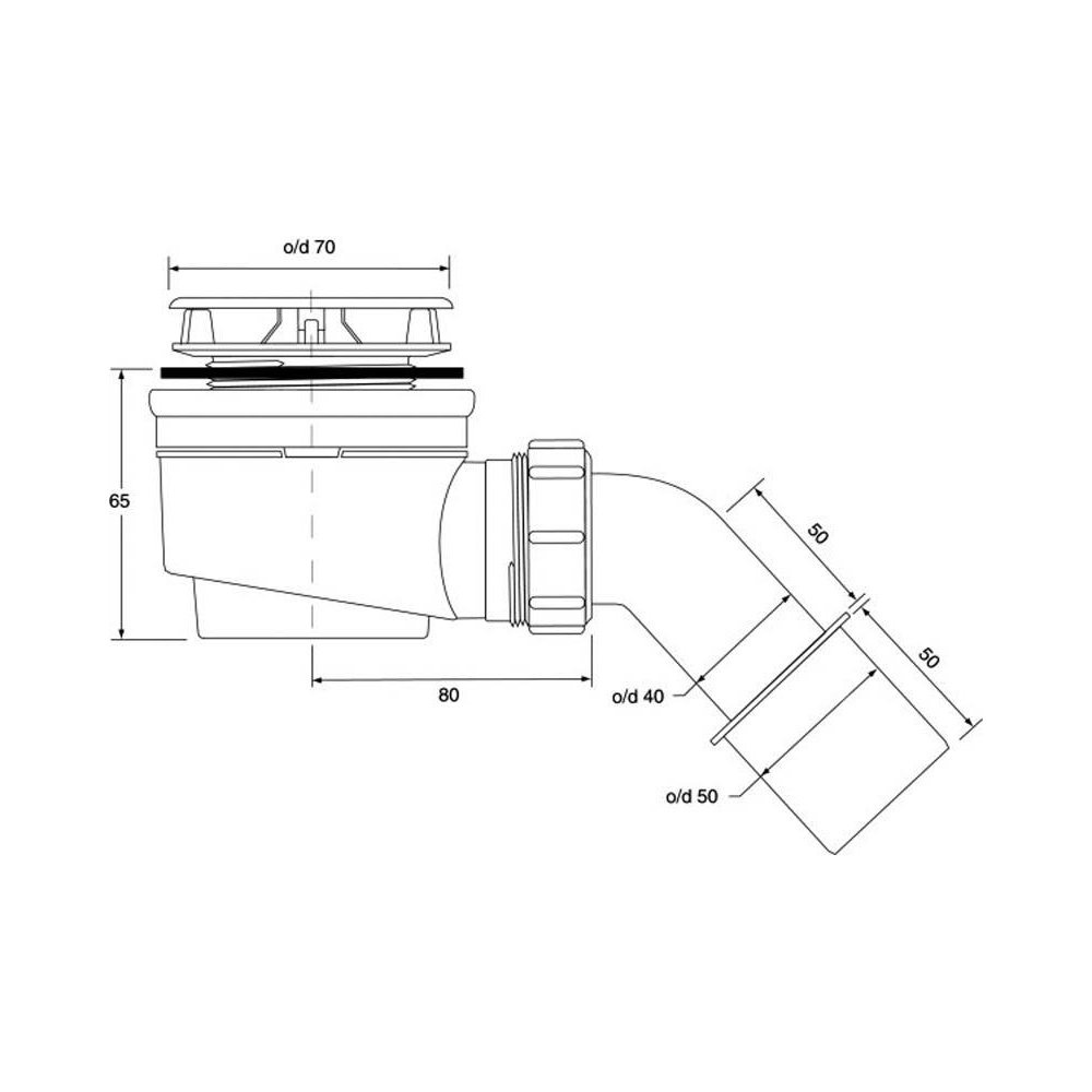 Syfon brodzikowy "niski" wys.65mm z odejściem 40/50mm czyszczony od góry ,pokrywa stal nierdzewna 70mm