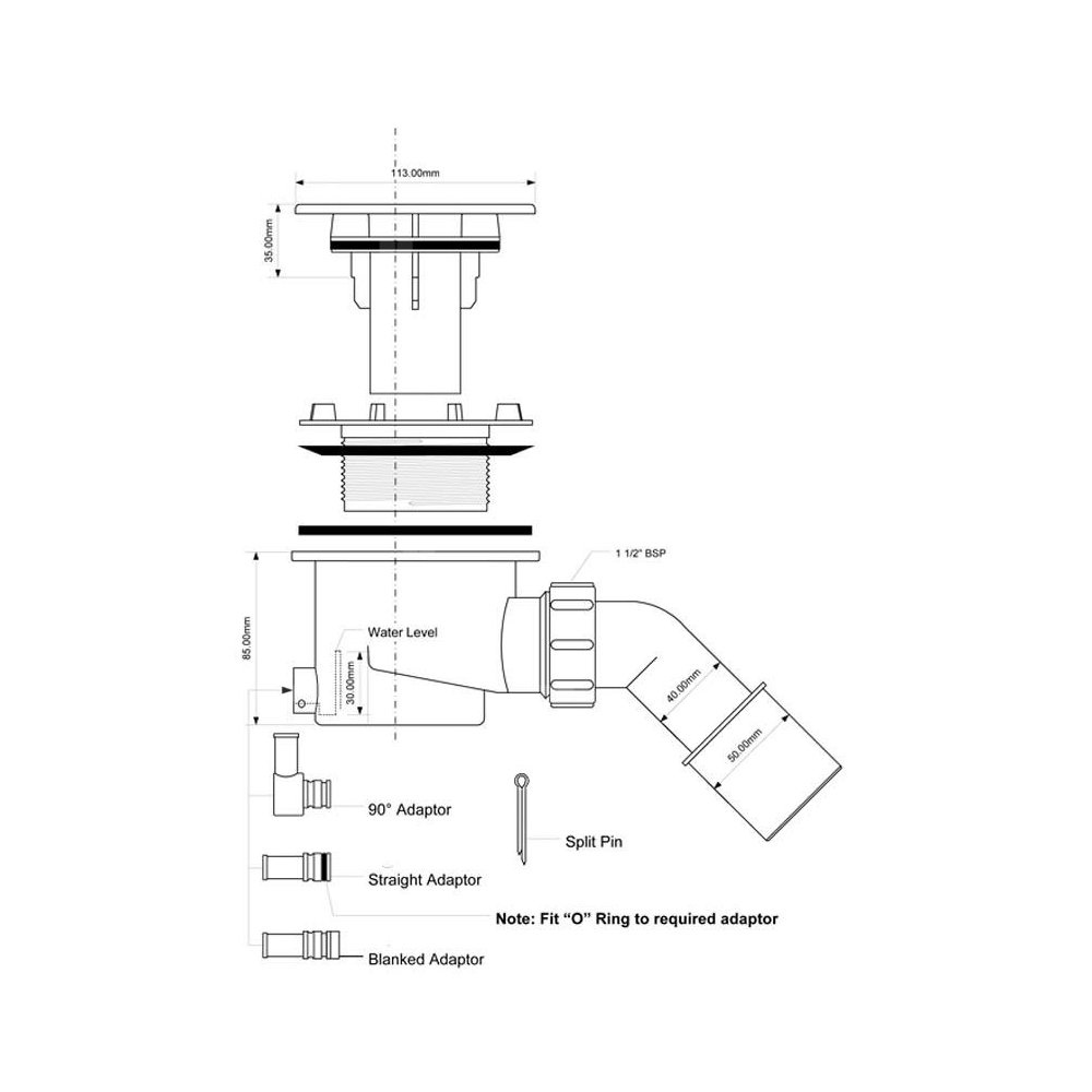 Syfon brodzikowy wys.80mm z odejściem 40/50mm czyszczony od góry ,pokrywa ABS CHROM 113mm z drenażem