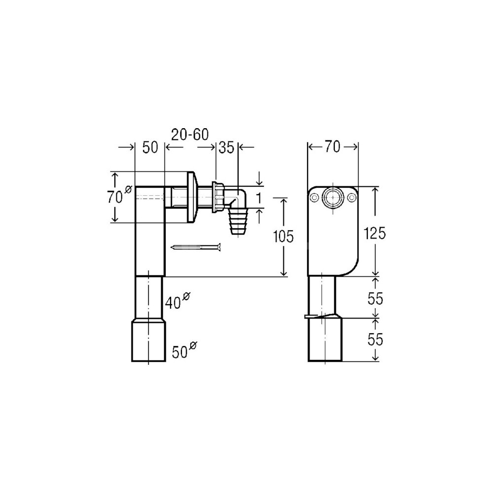 Syfon przeznaczenie: wbudowanie w ścianę, wąż odprowadzający wodę z pralki lub zmywarki do naczyń, tworzywo sztuczne, nr wzoru 5635.7 DN: 40/50