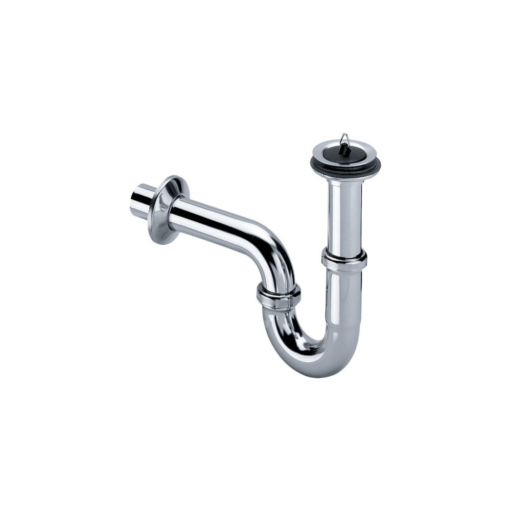 Syfon rurowy, mosiądz chrom.. Wyposażenie: Zawór uniwersalny ze stali nierdzewnej, korek do zaworu, uszczelka do górnej części zaworu, rura regulowana 100 mm, łuk odpływowy 170 mm, wg PN-EN 274, nr wzoru 5612, nr kat. 111 298, G: 1¼ DN: 32