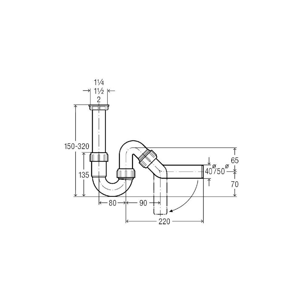 Syfon typu P (poziomy)