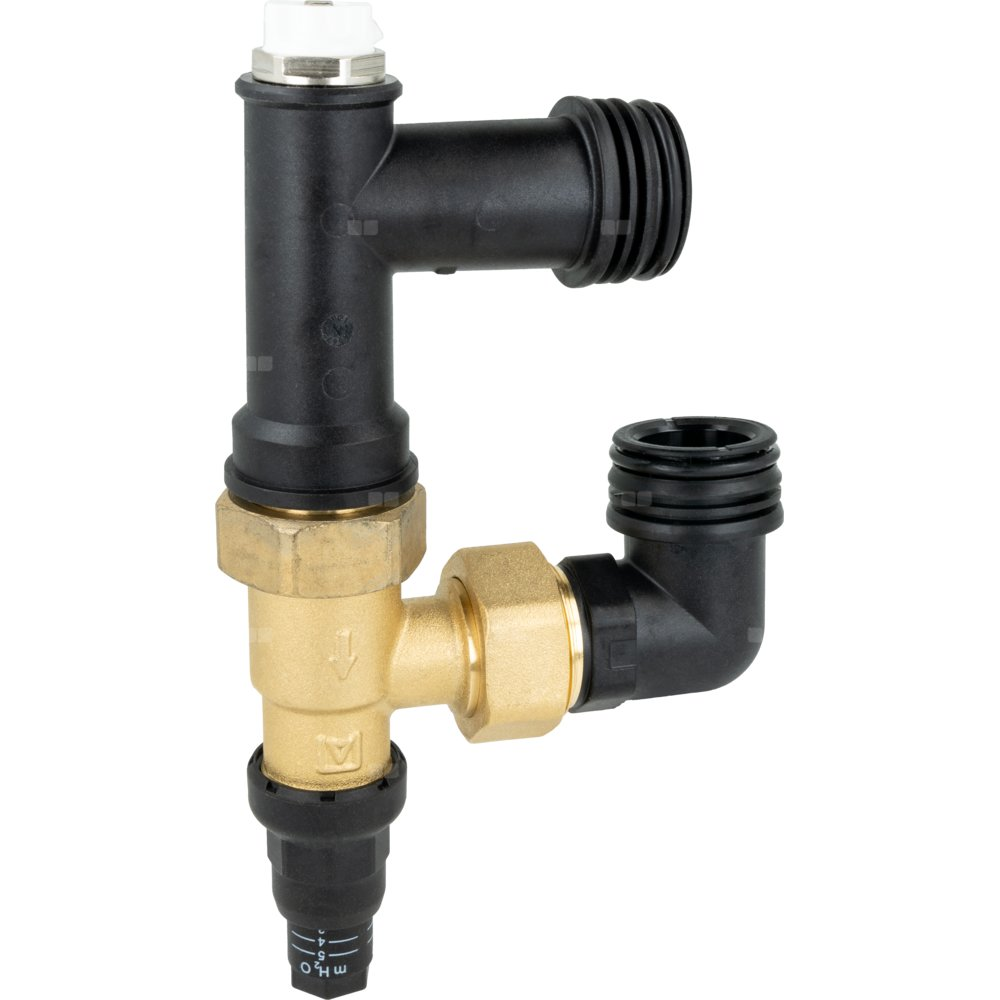 Przy wybranej różnicy ciśnień między strefą zasilającą a powrotną, zawór otwierając się upuszcza nadmiar ciśnienia bezpośrednio do powrotu. W ten sposób zapewniony zostaje przepływ przez źródło ciepła / chłodu, gdy wszystkie siłowniki termoelektryczne pozostają zamknięte.