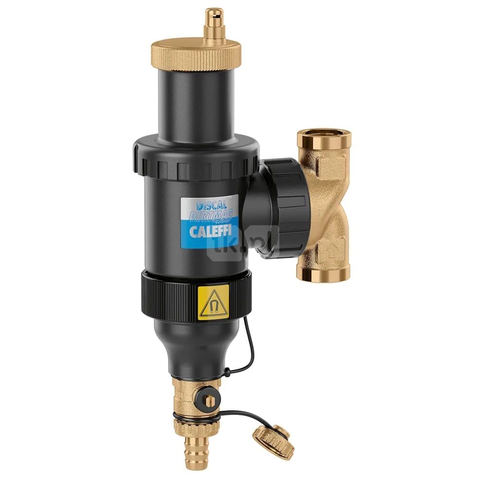 Separator powietrza - zanieczyszczeń z magnesem. Dla rur poziomych i pionowych. Z kapturkiem higroskopijnym. Zawór spustowy z króćcem do podłączenia węża. Przyłącze: Ø 28, podłączenie dla rur miedzianych. Maksymalne ciśnienie pracy: 3 bar. Zakres temperatury medium: 0–90 °C. Materiał: technopolimer.