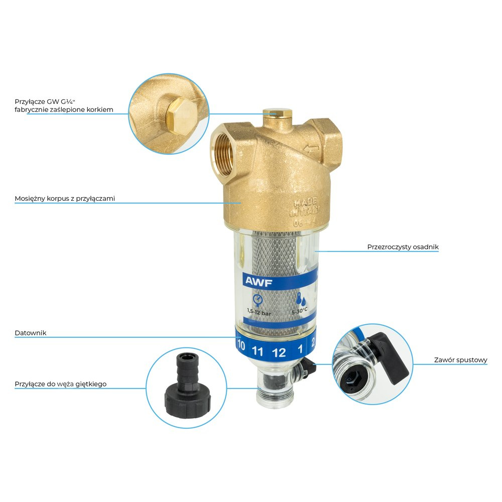 Filtr do wody AWF 120 z płukaniem ręcznym, GW G3/4''