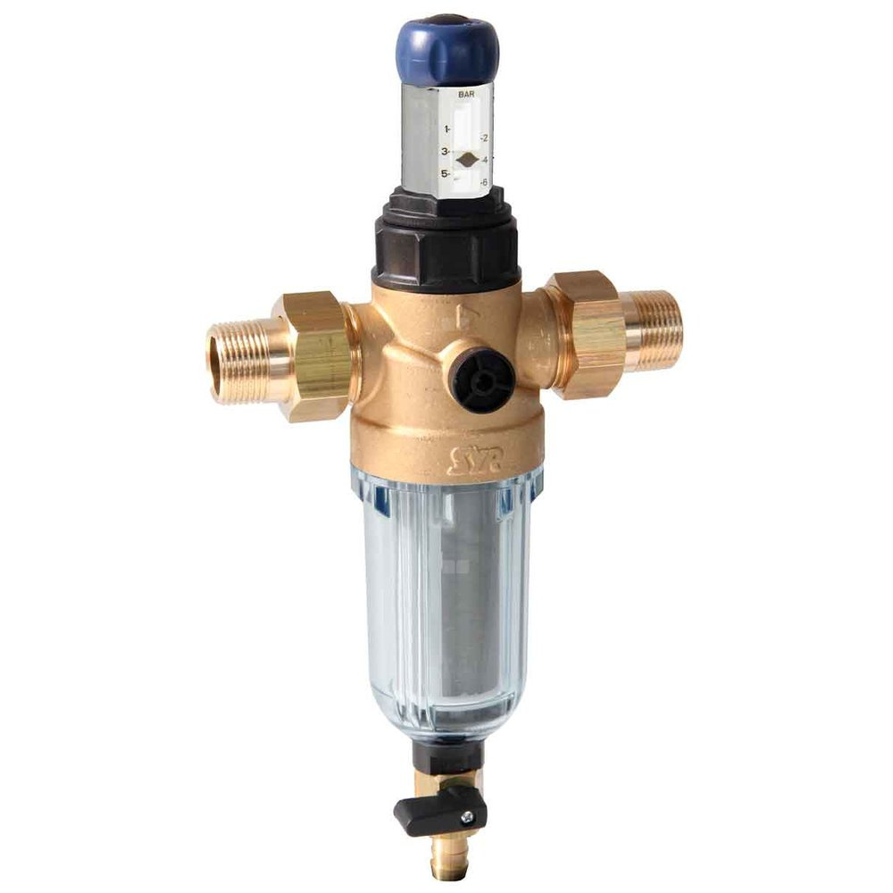 Filtry RATIO Start DFR DN20, DN25 znajdują zastosowanie jako armatura w instalacjach wody pitnej. Jest to specjalna kombinacja armatur, które razem tworzą kompletne przyłącze wody do domu. RATIO Start DFR to filtr z ręcznym płukaniem wstecznym i reduktorem ciśnienia.