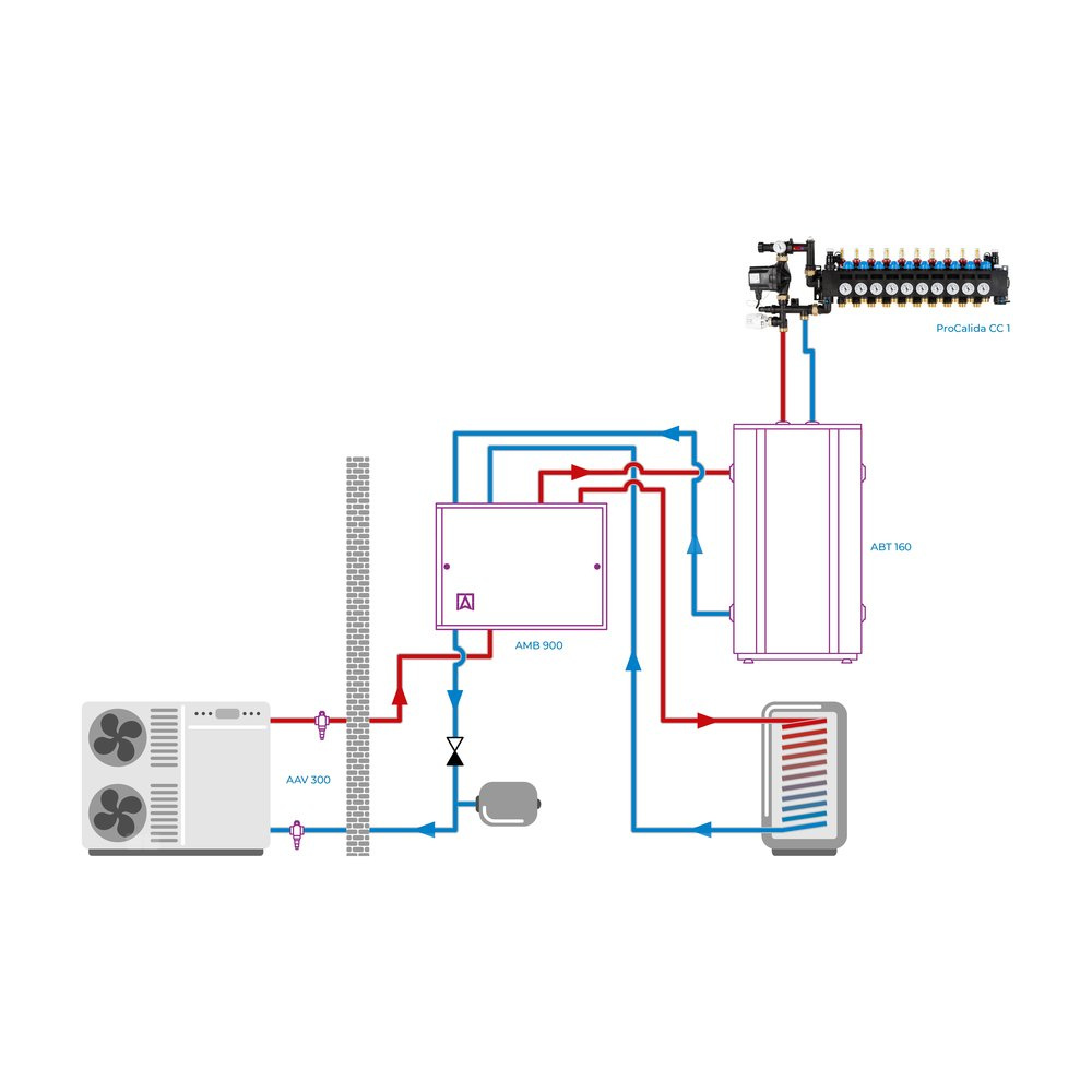 Montowany między źródłem ciepła / chłodu a rozdzielaczem ProCalida CC 1.