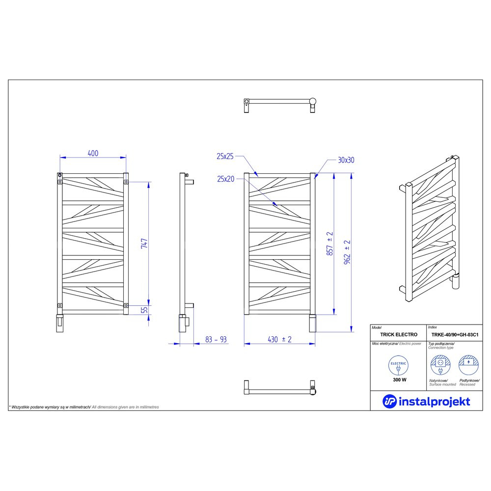 TRICK ELECTRO oferuje nie tylko oryginalny design, ale też dużą wygodę. Wynika ona z obecności poziomych profili, na których rozwiesisz niewielkie tekstylia, by je dosuszyć i oczywiście dużej wydajności grzewczej. Dzięki opatentowanej technologii urządzenie pobiera stosunkowo niewiele energii wobec ciepła, jakie generuje, uprzytulniając nawet dużą i chłodną łazienkę. Wykorzystano w nim najnowszy model grzałki elektrycznej: HOT2. Za jej sprawą grzejnik zyskał kilkustopniowe sterowanie dotykowe, timer, sygnalizację stanów alarmowych, a nawet tryb przeciwdziałający zamarzaniu. To oznacza łatwą obsługę dla wszystkich domowników. Urządzenie może zostać zamontowane na dwa sposoby: natynkowo lub podtynkowo.