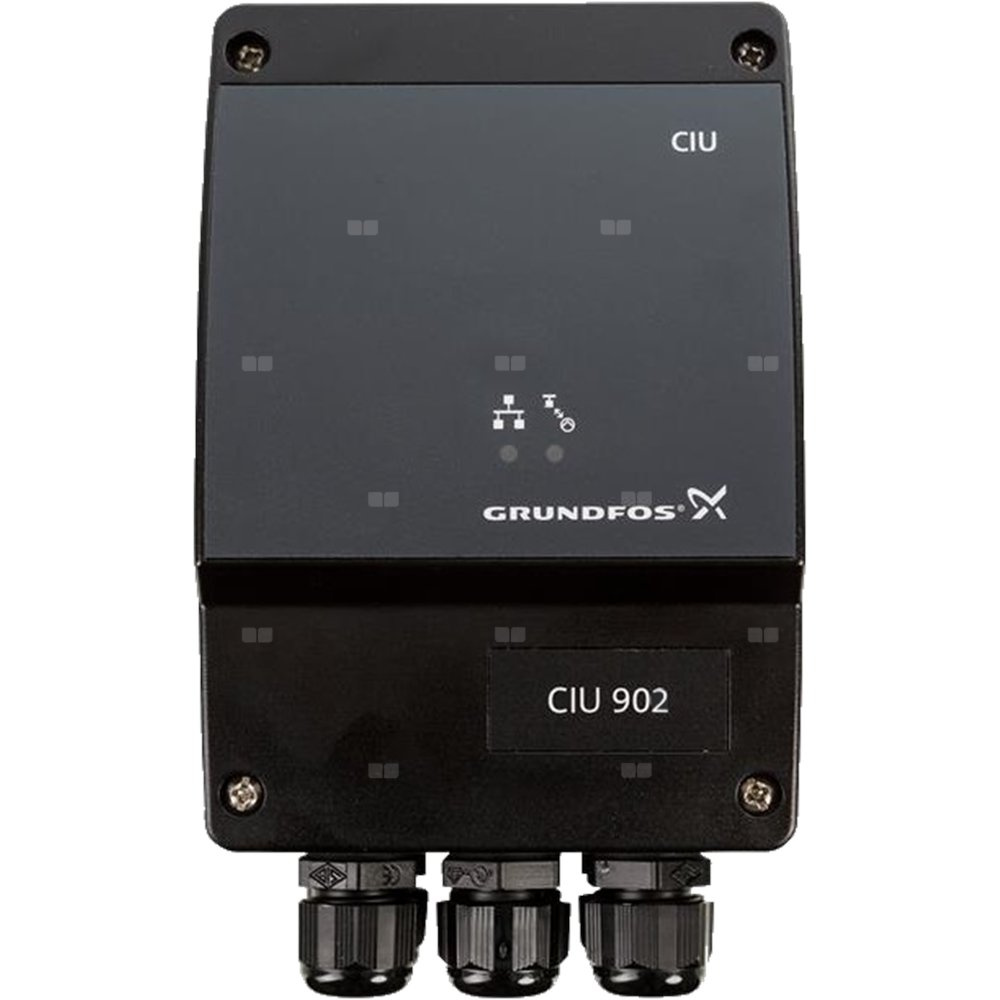 Interfejsy komunikacyjne. Interfejs komunikacyjny CIU 902 umożliwia komunikację między pompami Grundfos GO i pompowniami ścieków Grundfos AUTOADAPT. Jednostka CIU 902 jest wyposażona w zasilacz 24 VAC / VDC 24-240 V i może być instalowana jako jednostka naścienna lub na szynie DIN. Wewnątrz CIU 902 nie ma modułu CIM (Communications Interface Module).