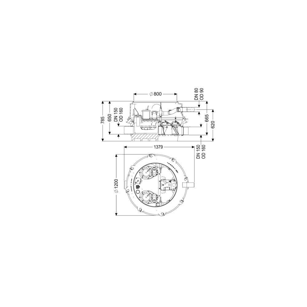 KESSEL Przepompownia przeciw. Ecolift XL, ścieków Ścieki bez fekaliów, zabudowa w ziemi, urządzenie dwupompowe, z 2 SPF 1500 pomp zatapialnych, typ pracy S1, czujnik alarmu z Sonda optyczna, sterownik Comfort Plus, Wariant z najniższą zabudową