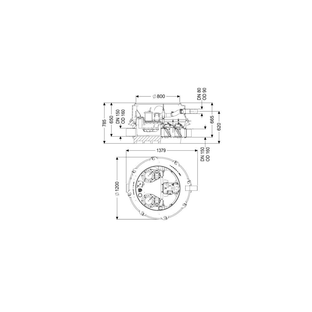 KESSEL Przepompownia przeciw. Ecolift XL, ścieków Ścieki zawierające fekalia i bez fekaliów, zabudowa w ziemi, urządzenie dwupompowe, z 2 SPF 1400 pomp zatapialnych, typ pracy S1, czujnik alarmu z Sonda optyczna, sterownik Comfort Plus z redundancją
