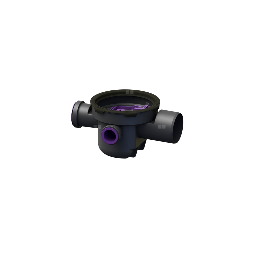 Wykonany z tworzywa sztucznego korpus jest wyposażony w wyjmowany zawór przeciwzalewowy z dwoma klapami zwrotnymi, ryglowane ręcznie zamknięcie awaryjne oraz osadnik. Korpus jest ponadto wyposażony w dwa dopływy DN 50 oraz dopływ DN 70 z zaślepką. Materiał: PP