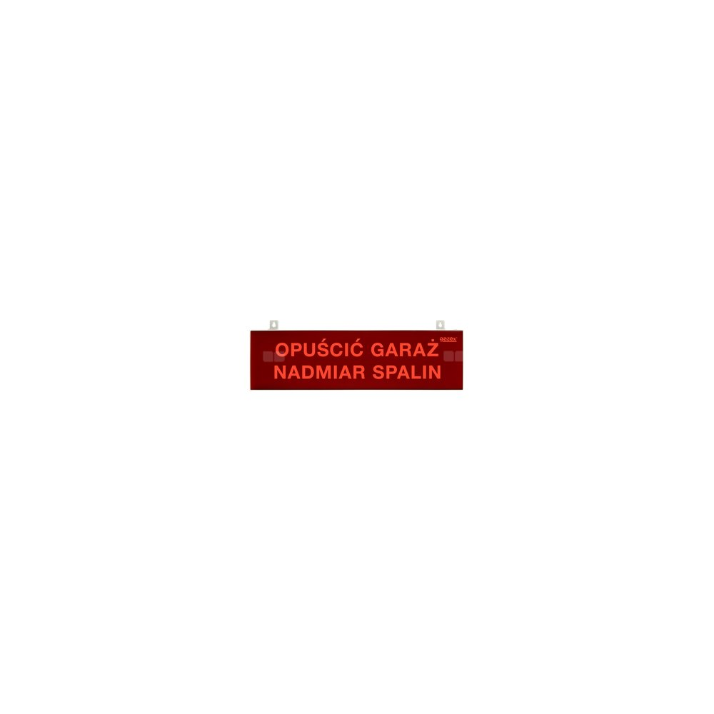 Cechy użytkowe nowoczesna forma wizualna, czytelne napisy (standardowa wysokość liter 35mm); napis nieczytelny bez podświetlenia, ujawnia się po załączeniu zasilania; podświetlenie pulsujące, barwy czerwonej – zwracające uwagę obserwatora; źródło światła: wysokowydajne diody LED – wysoka trwałość i niezawodność, mały pobór mocy; zasilanie napięciem bezpiecznym 12V~ lub 24V~; TP-4.s(2)/TP-4.ds(2) - dwuczęściowa konstrukcja: tablica TP-4.As(2)/TP-4.dAs(2) + TPZ-4 zasilacz sieciowy 12V~ (w puszce przyłączeniowej z elastycznymi, płaskimi przepustami); podłączenie 4-żyłowe (TP-4.s2, TP-4.ds2) – możliwość podłączenia cichej/głośnej sygnalizacji akustycznej; możliwość wyłączenia sygnalizacji akustycznej; montaż naścienny (tablica jednostronna) lub podwieszany (tablica dwustronna). Standardowe napisy H1 - “NIE WCHODZIĆ NADMIAR SPALIN” H2 - “OPUŚCIĆ GARAŻ NADMIAR SPALIN” H3 - “NIE WJEŻDŻAĆ NADMIAR SPALIN” H4 - „WYCIEK AUTOGAZU ZACHOWAĆ OSTROŻNOŚĆ” H5 - „UWAGA ! NADMIAR SPALIN” Inne napisy H0 - napis dowolny, według specyfikacji (2 rzędy napisów, 20 znaków max. na rząd) Sygnalizacja optyczna pulsująca, czerwona Napis informacyjny NIE WJEŻDŻAĆ NADMIAR SPALIN Sygnalizacja akustyczna 65 dB/1m Napięcie zasilania 230V~ Wymiary 555 x 155 x 23 mm