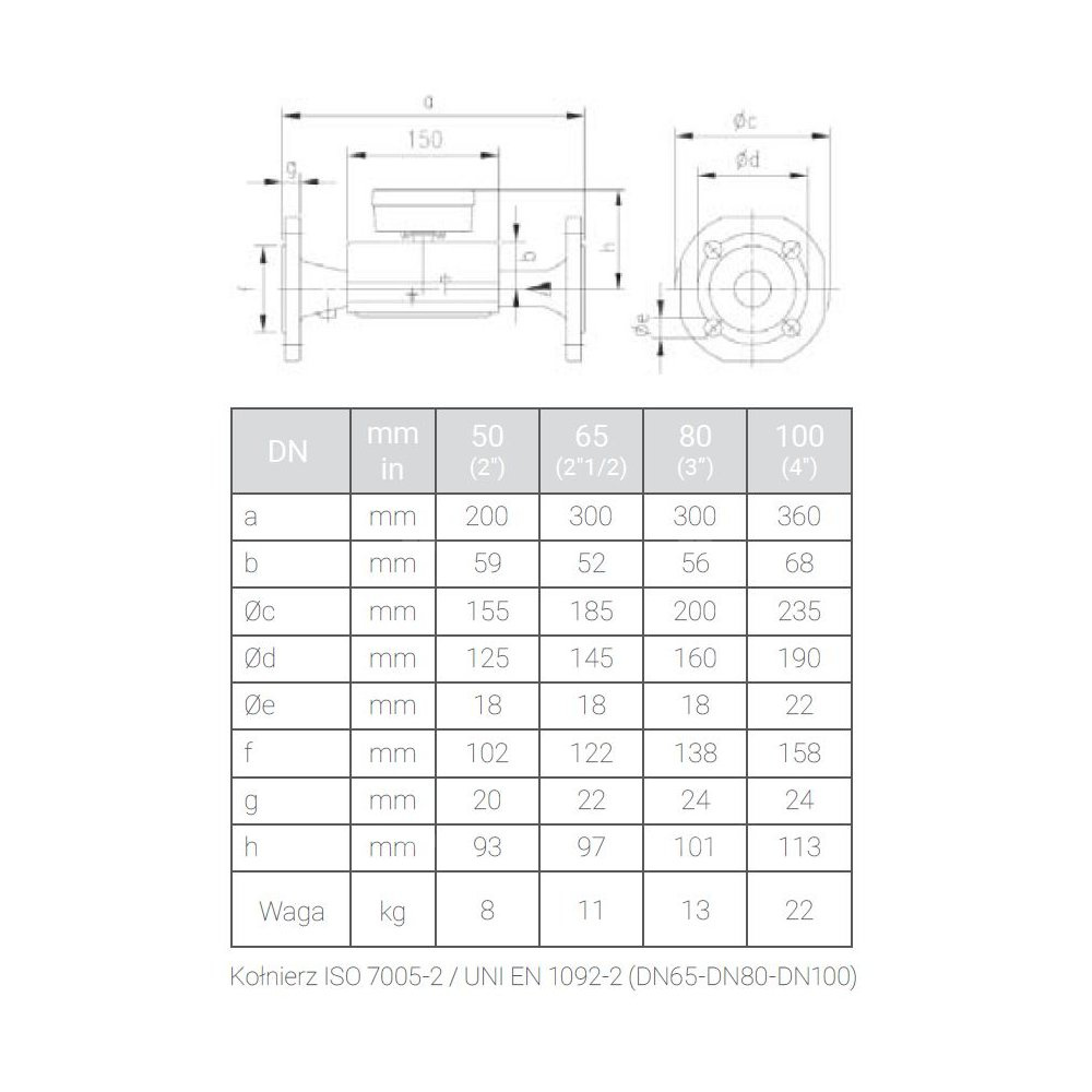 Model HYDROSONIS UP 3'' QN-40,0 m3/h DN 80 P lub Z KOŁNIERZ