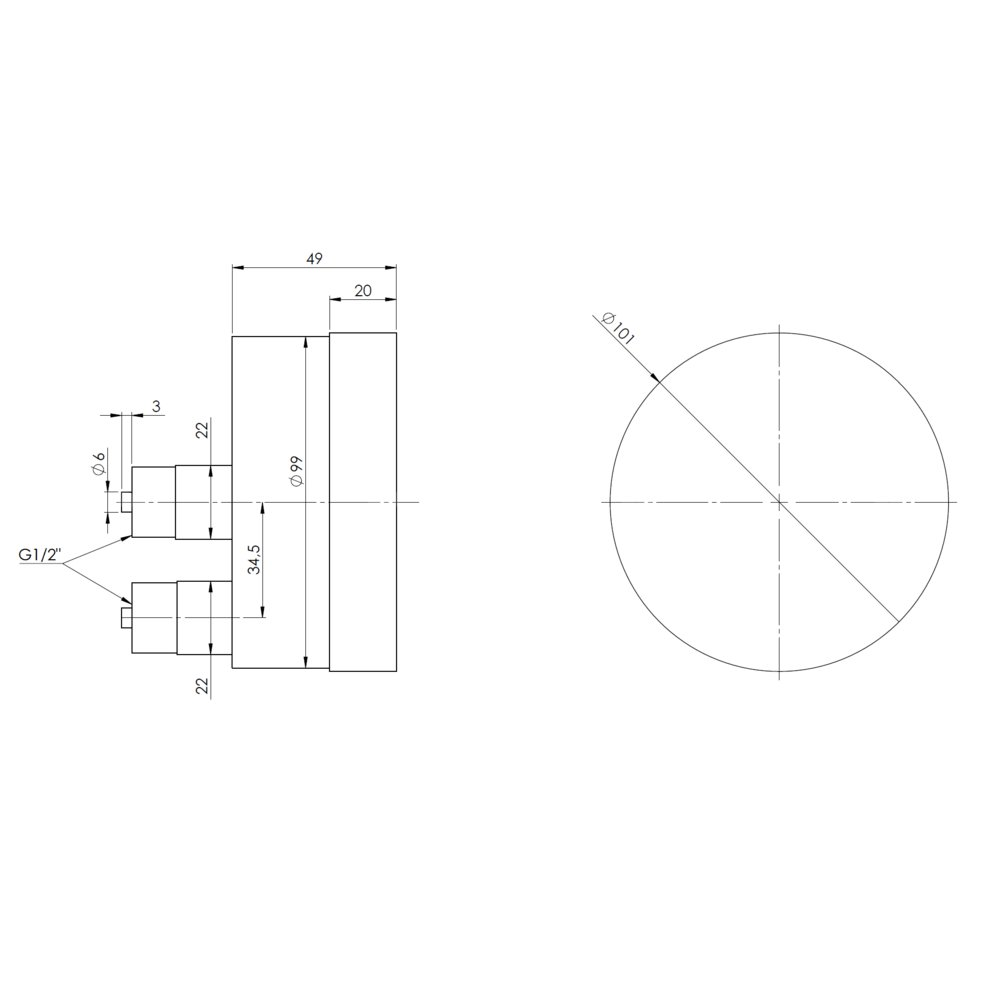 Ciśnieniomierz różnicowy AFRISO KP Dif D411 0/25 mbar mosiądz G1/2B aksjalne fi 100, kl. 1.6%