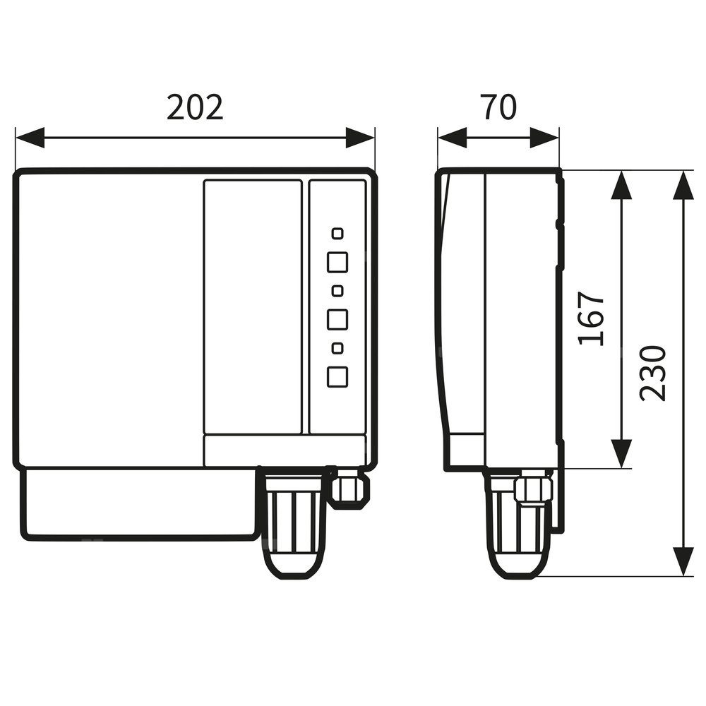 W odpornej na uderzenia obudowie detektora Eurovac znajdują się następujące elementy: diody sygnalizujące oraz przyciski kontrolne, pompka ciśnieniowa, presostat, płyta główna z komponentami umożliwiającymi generowanie sygnału wyjściowego, filtr oraz 3 przyłącza do pneumatycznego połączenia ze zbiornikiem.