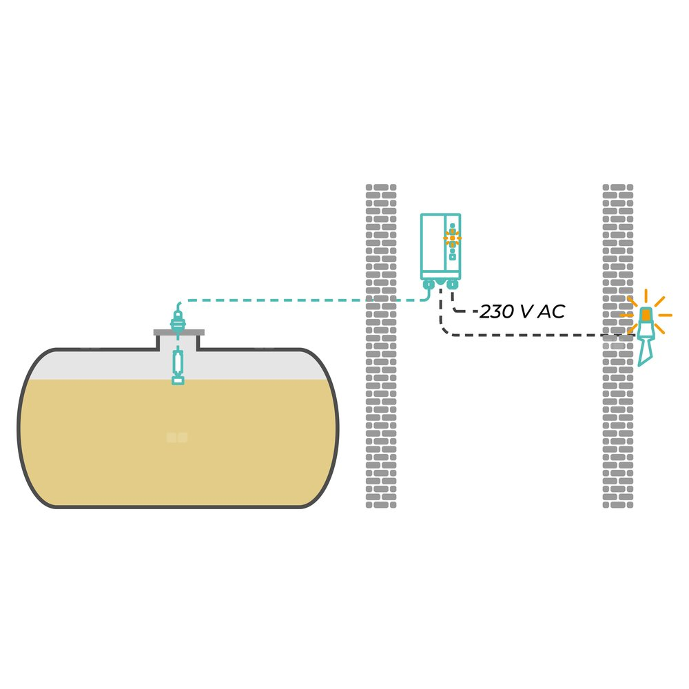 Przeznaczony do sygnalizacji akustycznej oraz wizualnej stanu maksymalnego w zbiorniku.