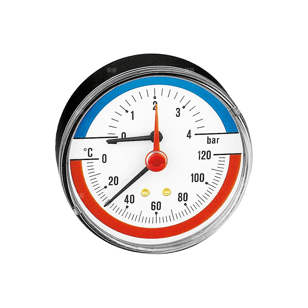 Termometr/manometr. Przyłącze środkowe, tylne 1/2" 0-6 bar