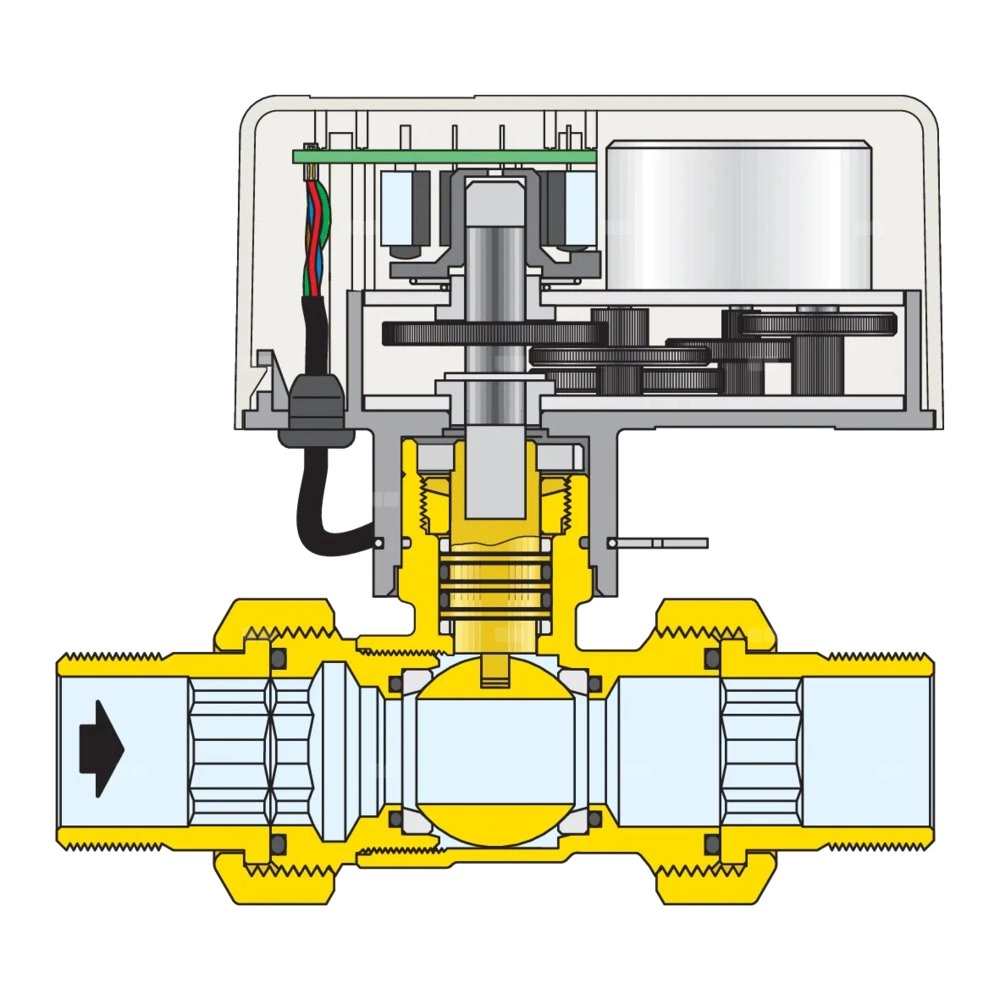 Dwudrożny kulowy zawór strefowy z napędem.
