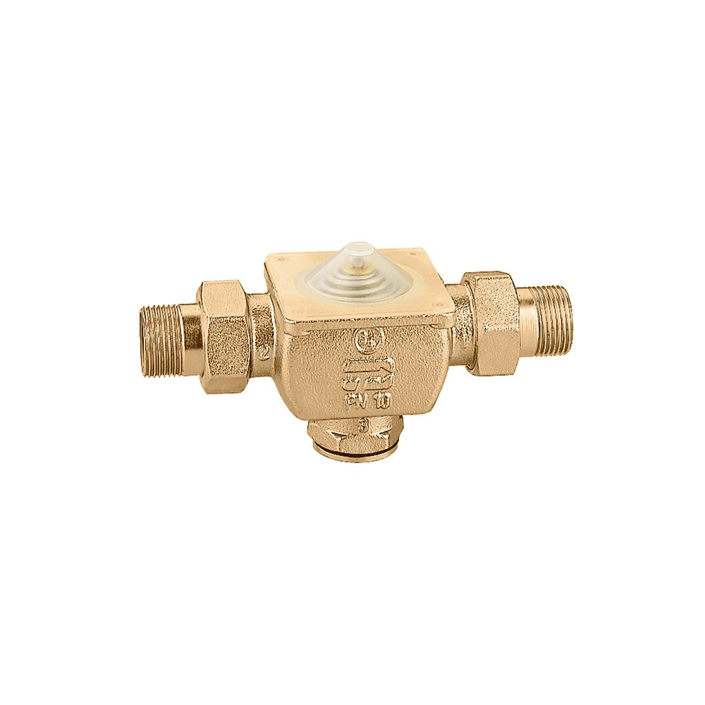 Dwudrożny zawór strefowy, tłokowy Przyłącze: R 1" (EN 10226-1) GZ. Maksymalne ciśnienie pracy: 10 bar. Zakres temperatury medium: -5–95 °C. △p max.: 1 bar. Kv przelot: 6,38 m³/h.