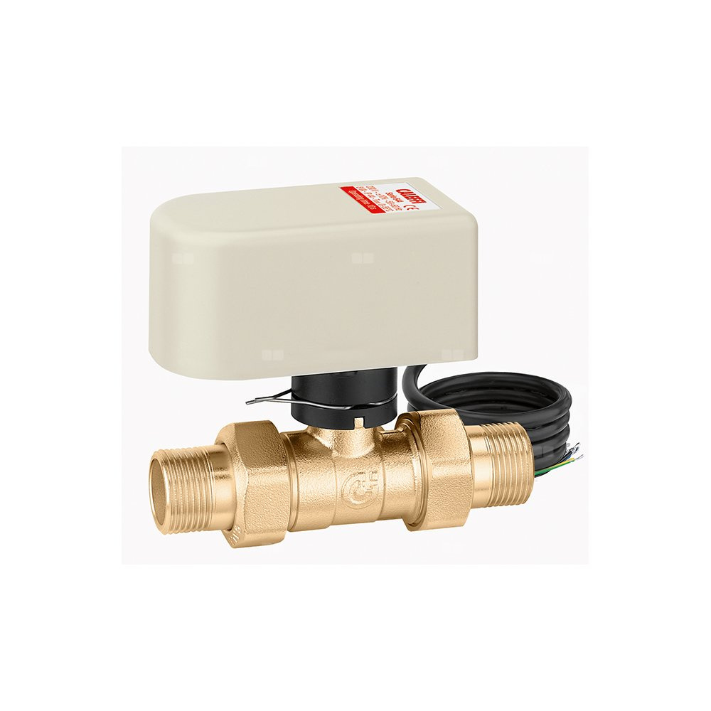 Dwudrożny, zawór kulowy z napędem Z mikroprzełącznikiem pomocniczym Z siłownikiem ze sterowaniem 3-punktowym Przyłącze: G 1/2" A (ISO 228-1) GZ. Maksymalne ciśnienie pracy: 10 bar. Zakres temperatury medium: -5–110 °C. Zakres temperatury otoczenia: 0–55 °C. Zasilanie elektryczne: 24 V (AC). Pobór mocy: 8 VA. Stopień ochrony: IP 44 (w pozycji pionowej), IP 40 (w pozycji poziomej). Długość przewodu zasilająego: 1 m. Styk mikroprzełącznika pomocniczego (230 V): 0,8 A. △p max.: 10 bar. Kv: 11,1 m³/h. Czas zadziałania: 10 s (obrót 90°).