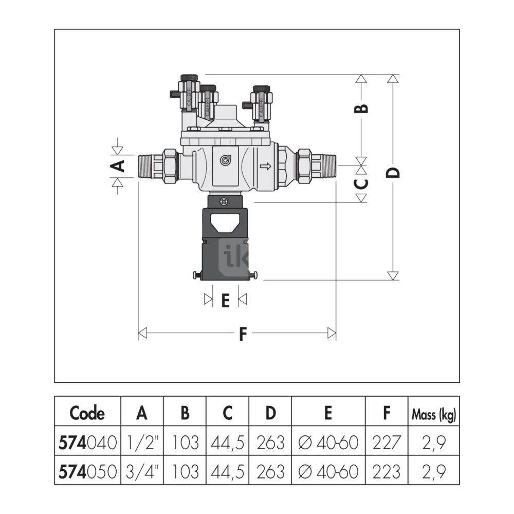 Przed izolatorem przepływów zwrotnych należy zamontować filtr siatkowy serii 577.