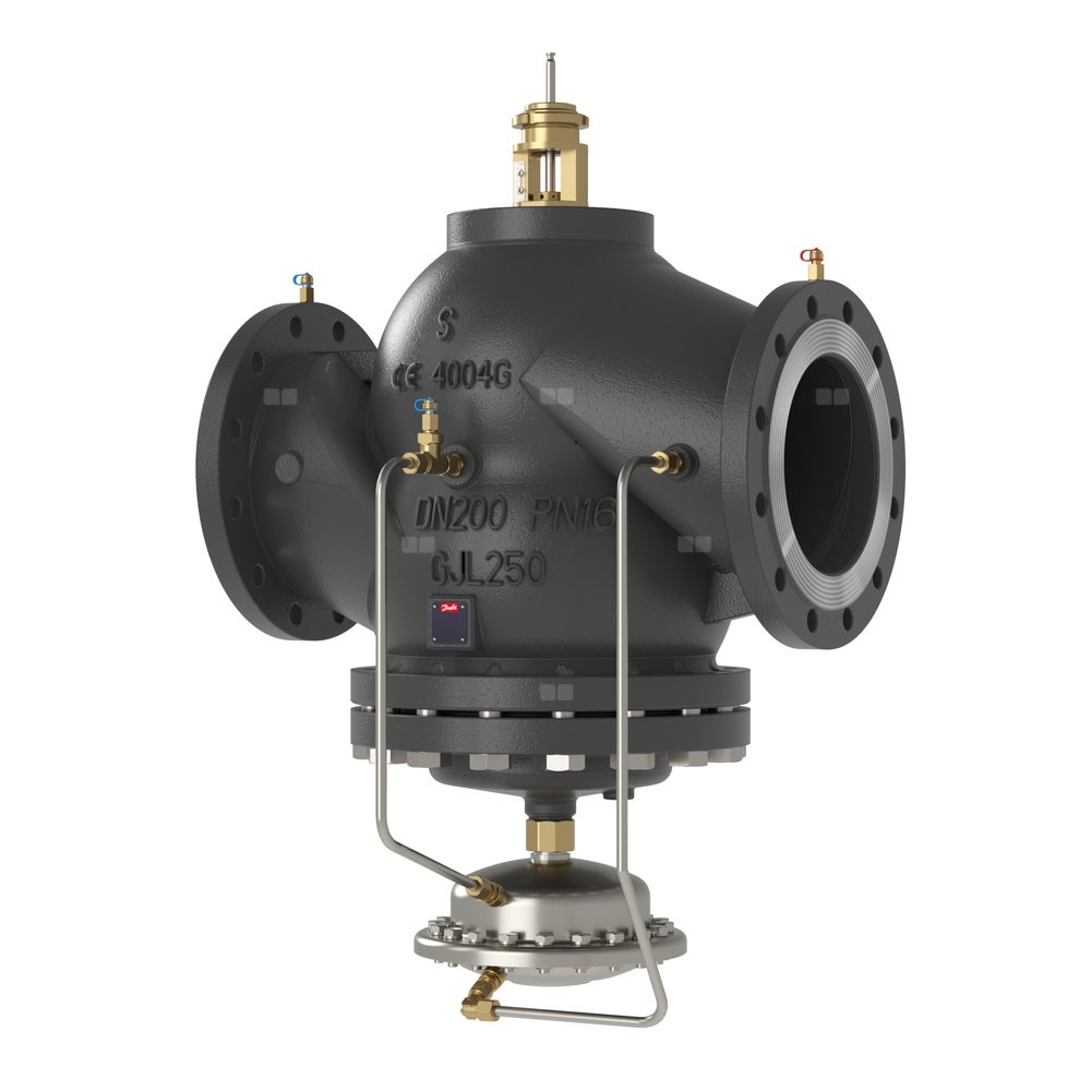 Zawór regulacyjny DANFOSS Żeliwo PN 16, pol. Kołnierz DN 200, natężenie przepływu 190 … 76m3/h od -10'C do 120'C, niezależny od ciśnienia