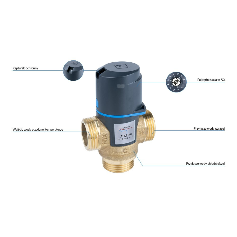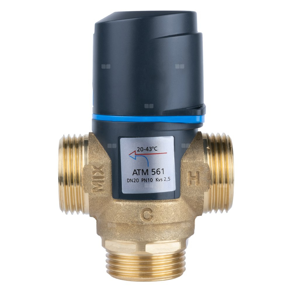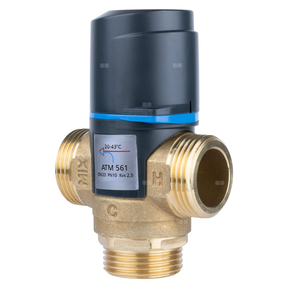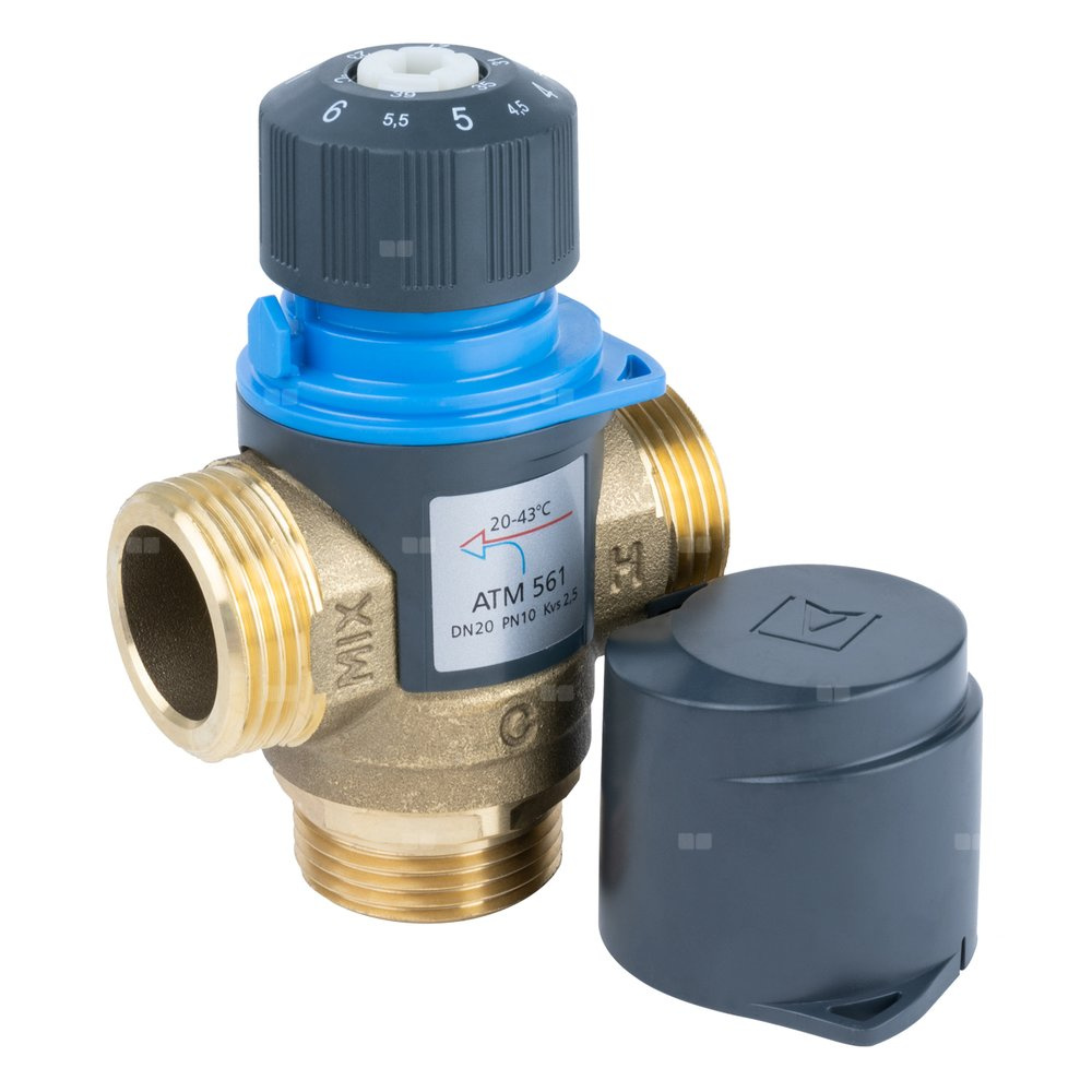 Zawór regulacyjny termostatyczny do wody ciepłej AFRISO ATM 561 mosiądz GZ 1'', DN 20, zakres temp. 20-43'C, Kvs 2.5 m3/h, maksymalna temperatura 90'C, maksymane ciśnienie 10 bar