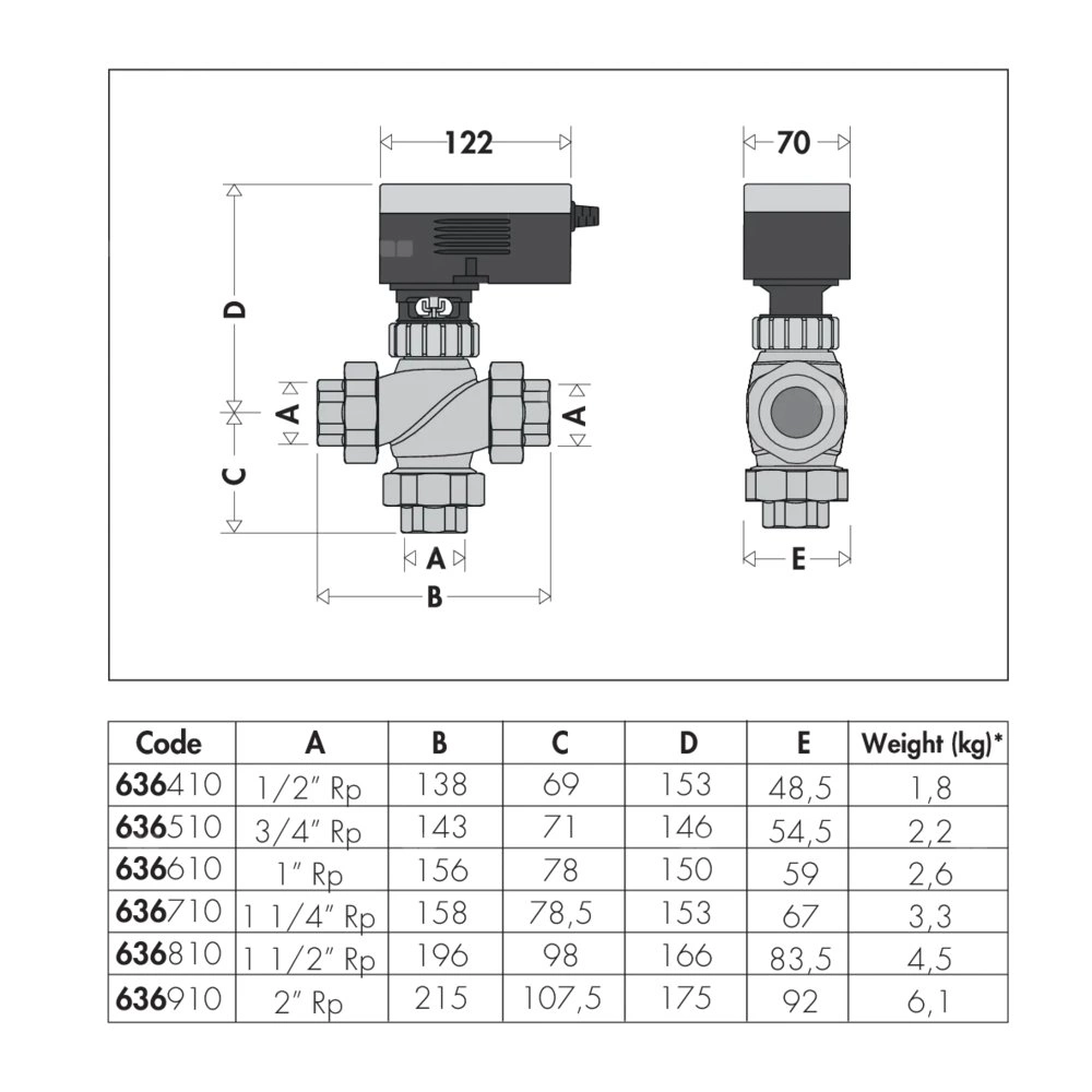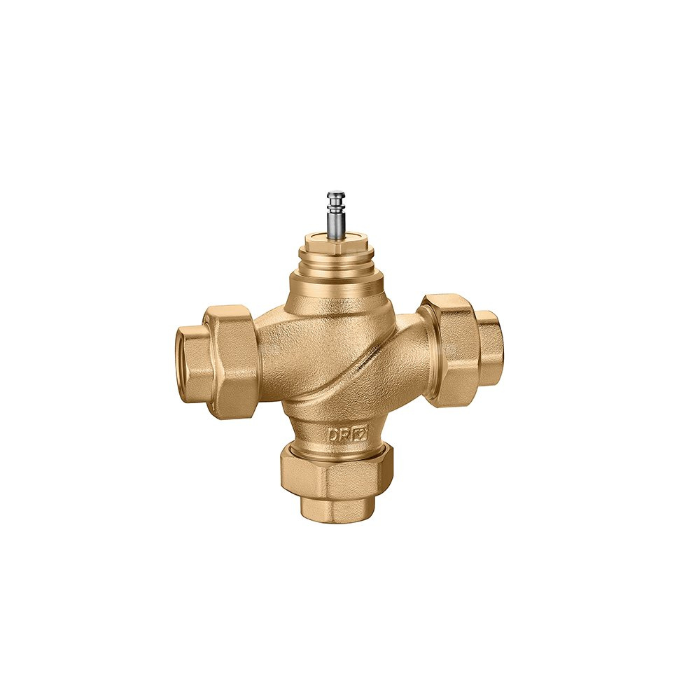 Trójdrożny zawór regulacyjny, gwintowany Charakterystyka stałoprocentowa. Przyłącze: Rp 3/4" (EN 10226-1) GW, złączka. Maksymalne ciśnienie pracy: 16 bar. Zakres temperatury medium: 0–100 °C. PN (Ciśnienie nominalne): PN 16. DN: DN 20 (korpus). Kv: 6,3 m³/h.