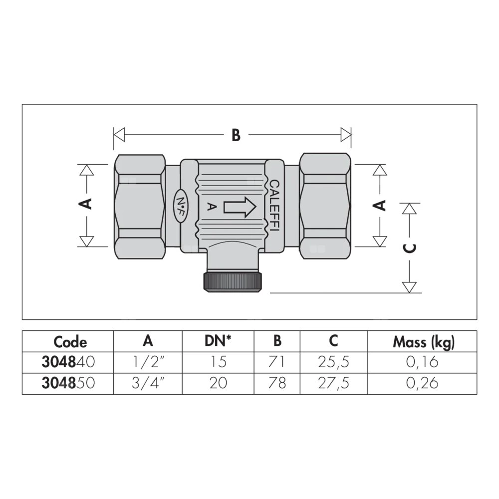 Podwójny zawór antyskażeniowy z możliwością nadzoru Przyłącze: G 3/4" (ISO 228-1) GW. Maksymalne ciśnienie pracy: 10 bar. Zakres temperatury medium: 0–65 °C. Materiał: mosiądz.