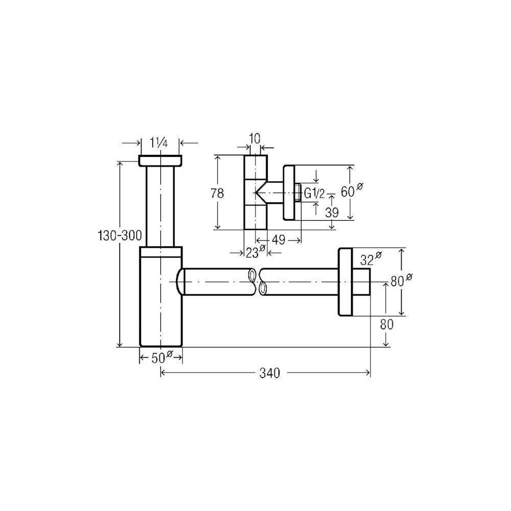 Zestaw syfonu butelkowego VIEGA 57884 (akcesorium) do umywalki do podwieszanej miski WC do bidetu mosiądz (chromowanie) g 1 1/4'', dn 32