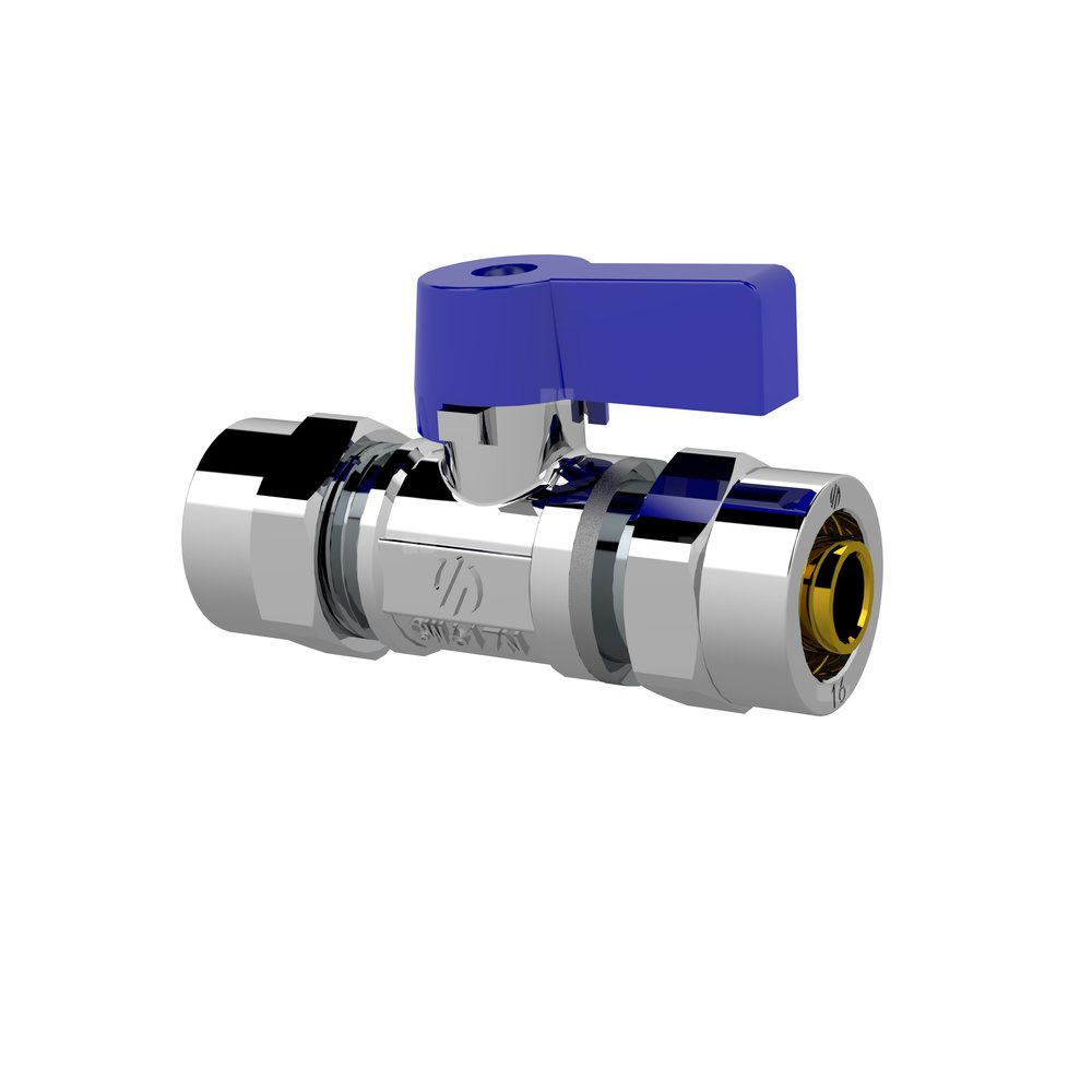 Zawór kulowy ARCO MINI do rur wielowarstwowych 16 zw x zw prosty, uchwyt: niebieski