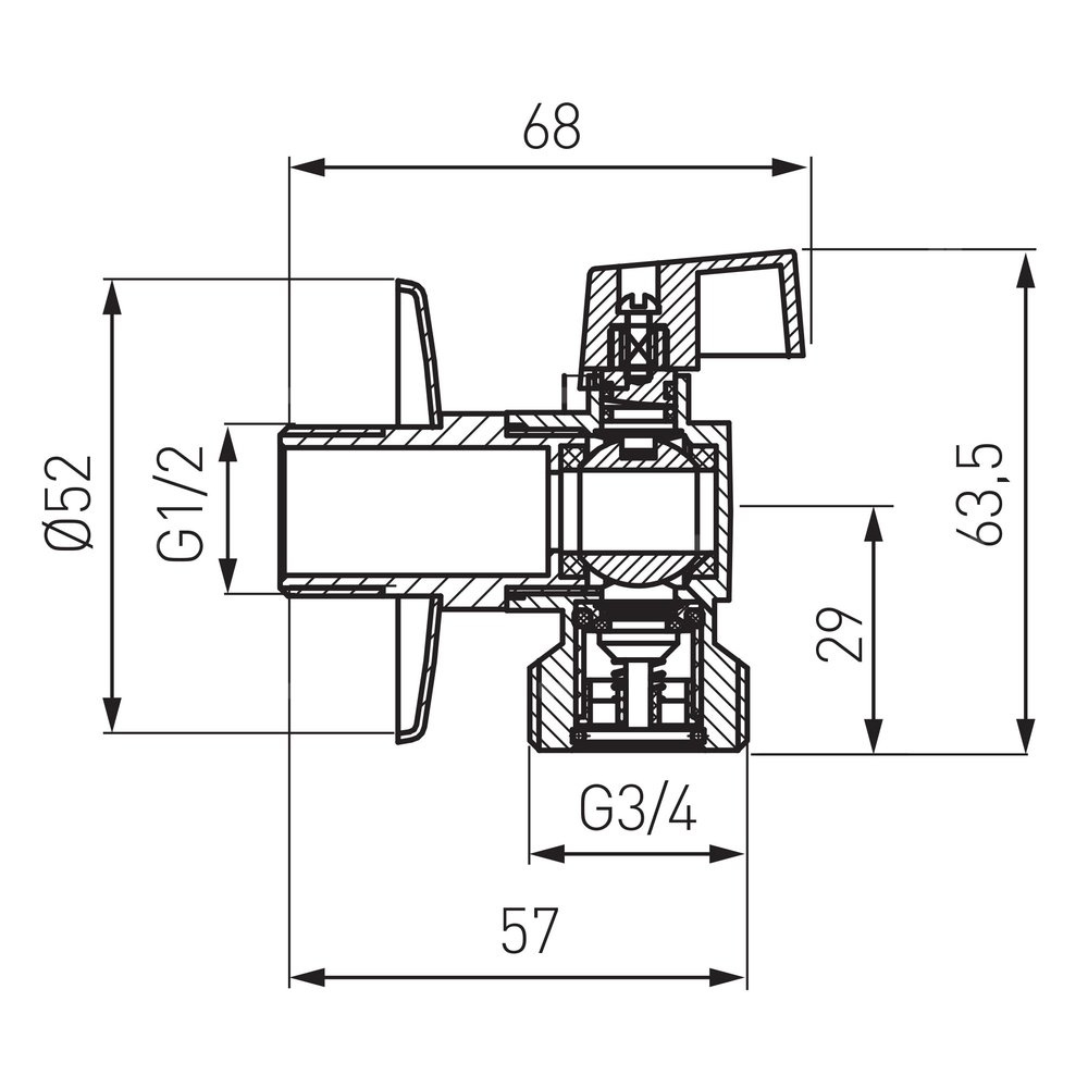 Wytrzymały korpus wykonany jest z mosiądzu CW617N, a jego powierzchnie wewnętrzne przystosowane są do wody pitnej. Zawór wyposażony jest w metalowy uchwyt oraz zawór zwrotny.