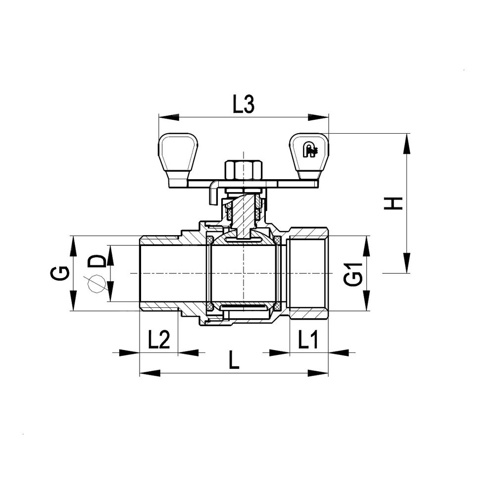 Zawór kulowy KFA Armatura mosiądz, PN 20 1/2'' GW x GZ, uchwyt: motylek