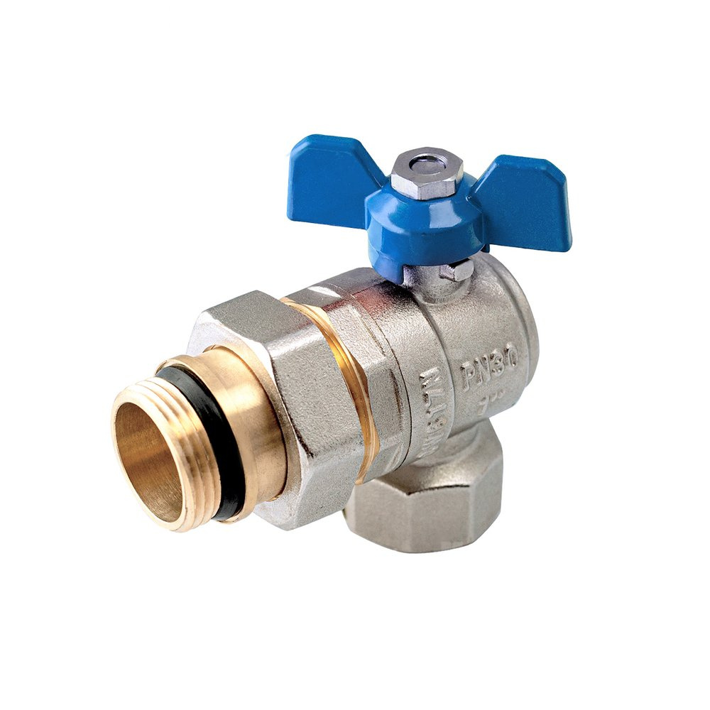 Zawór kulowy PERFEXIM PHA-010A mosiądz niklowany, PN30 1'' GZ x GW kątowy, uchwyt: motylek (niebieski)