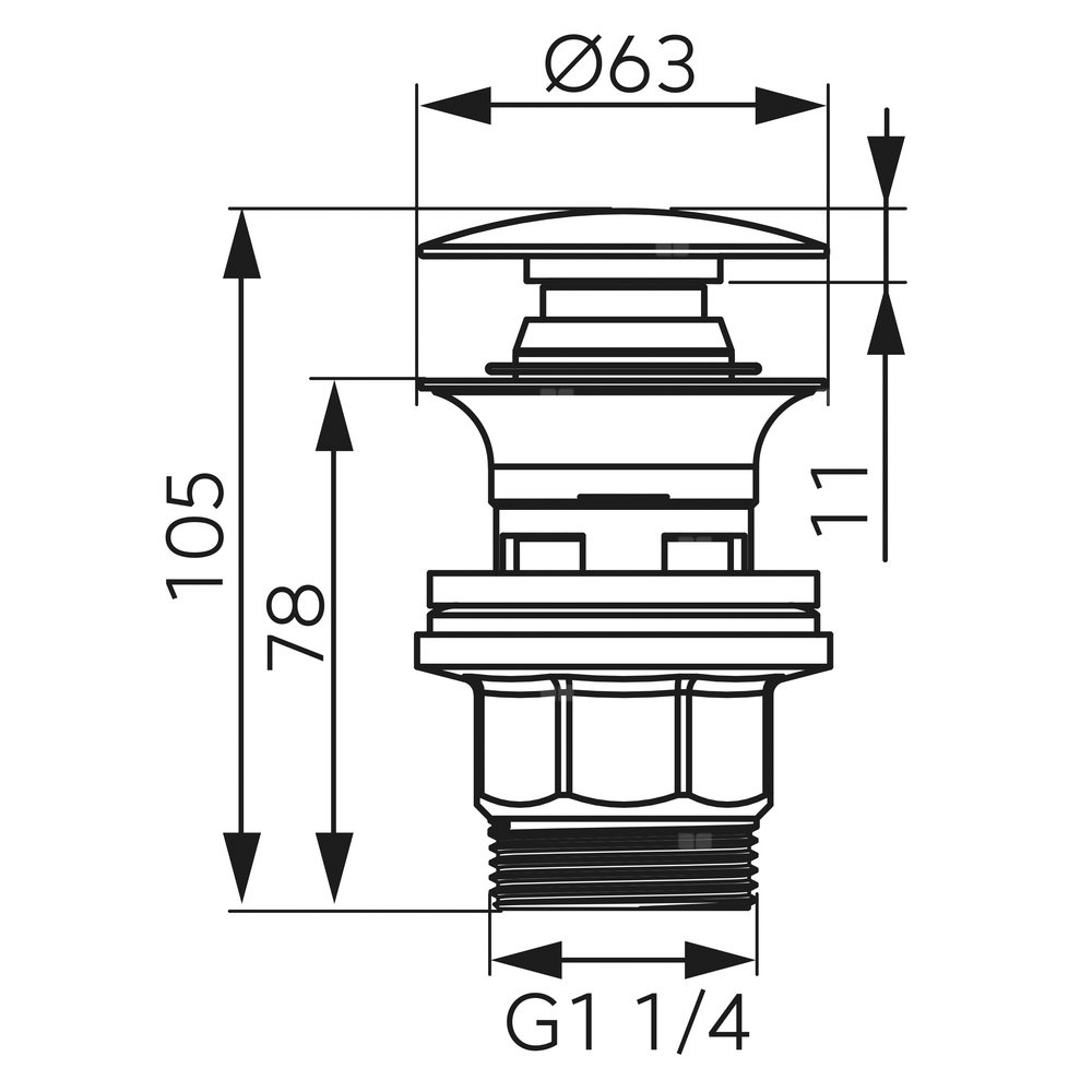 Trwały, czarny korek z korpusem wykonanym z tworzywa, przeznaczony do umywalek z przelewem. Okrągła zaślepka korka wykonana jest z mosiądzu.