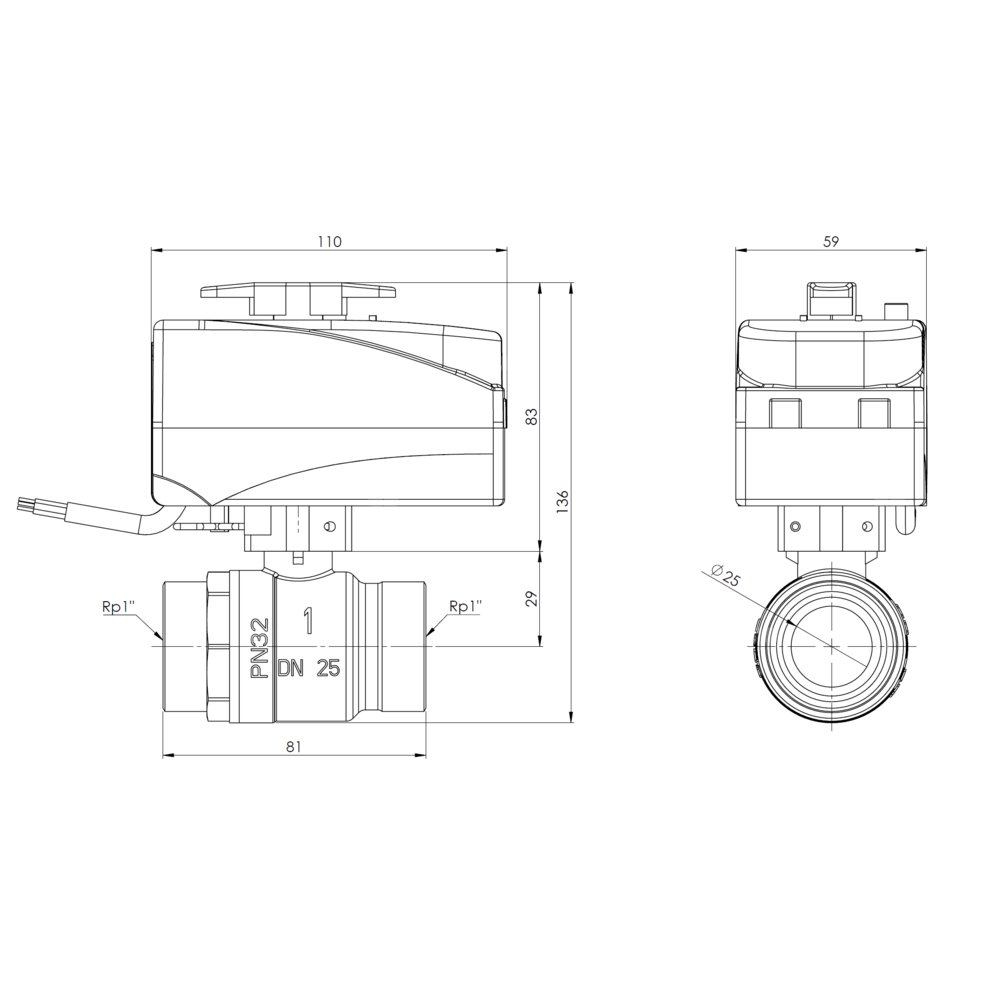 Siłownik sterowany sygnałem 2-punktowym (SPST) z możliwością pracy ręcznej.