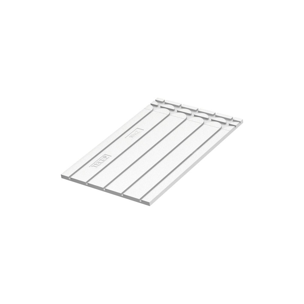 Płyta podstawowa do montażu ogrzewania podłogowego zgodnie z konstrukcją typu B (rury układane w warstwie izolacji pod jastrychem). Pozwala na użycie standardowych produktów suchego jastrychu (Knauf, Fermacell, Rigips, itp. ) Jak również jastrychu mokrego (jastrych cementowy, jastrych anhydrytowy). Wykonana z twardej pianki polistyrenowej (EPS), z kanałami do układania rur, w których zastosowano profile przewodzące ciepło TECEfloor oraz rury ogrzewania podłogowego TECEfloor 16 x 2 mm. Może być ułożona w pojedynczym lub podwójnym meandrze, wolna od HBCD.