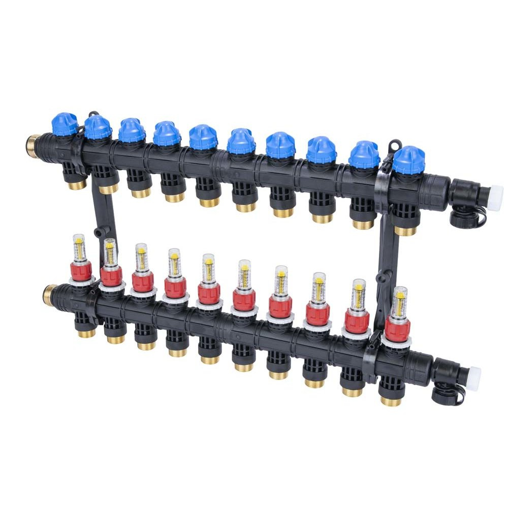 Rozdzielacz do ogrzewania podłogowego AFRISO ProCalida EF1 K 10-obieg. poliamid GZ 1'' x euroconus 3/4'' + przepływomierz + zawór napełn/spust
