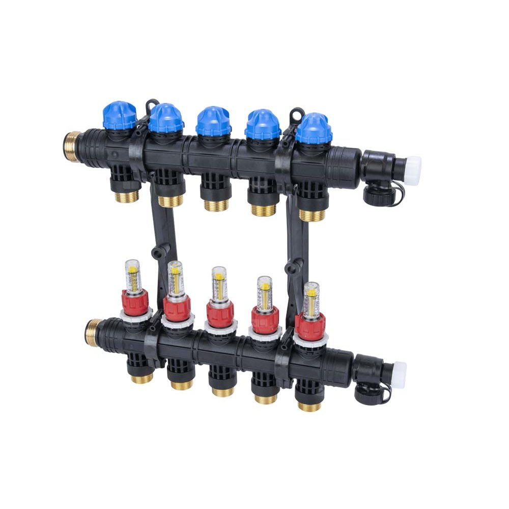 Rozdzielacz do ogrzewania podłogowego AFRISO ProCalida EF1 K 5-obieg. poliamid GZ 1'' x euroconus 3/4'' + przepływomierz + zawór napełn/spust