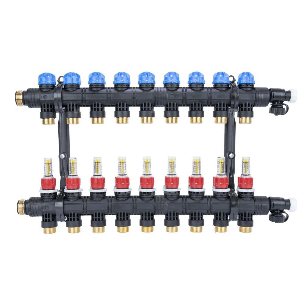 Rozdzielacz do ogrzewania podłogowego AFRISO ProCalida EF1 K 9-obieg. poliamid GZ 1'' x euroconus 3/4'' + przepływomierz + zawór napełn/spust