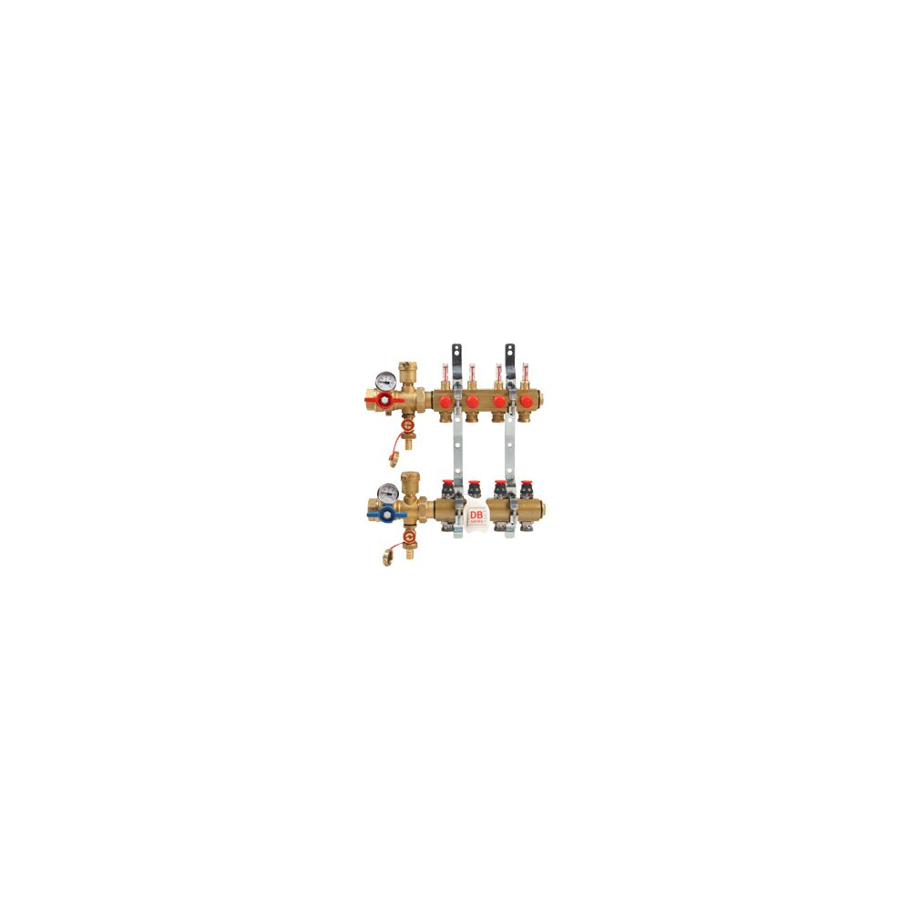 Rozdzielacz do ogrzewania podłogowego GIACOMINI R553FKDB 2-obieg. mosiądz 1'' x GZ metryczny 18 + przepływomierz + termometr + zawór napełn/spust + odpowietrznik + zawór przy przyłączu