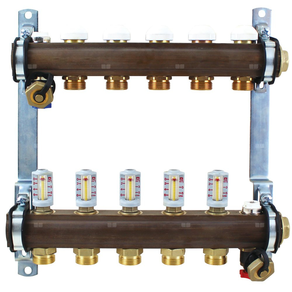 Rozdzielacz do ogrzewania podłogowego HERZ 11-obieg. GW 1'' x GZ 3/4'' + przepływomierz + zawór napełn/spust + odpowietrznik
