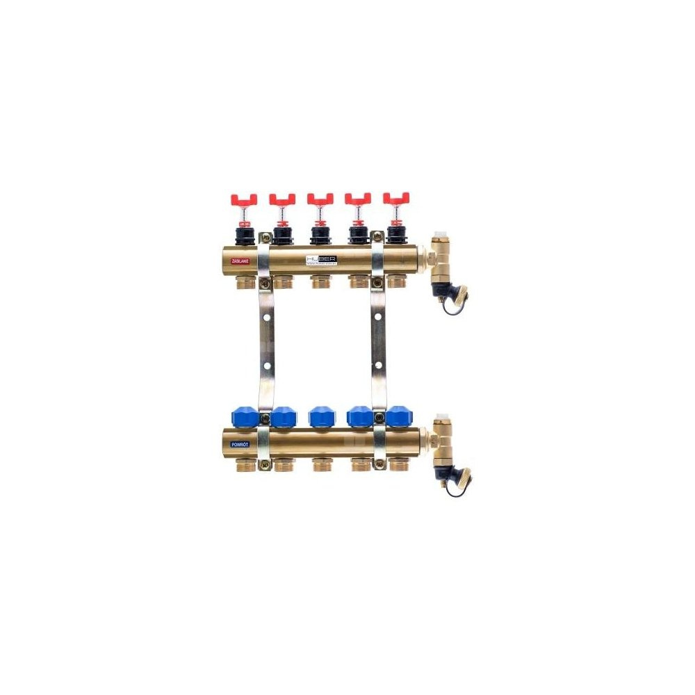 Rozdzielacz do ogrzewania podłogowego QIK BASIC II 9-obieg. mosiądz GW 1'' x GZ 3/4'' + przepływomierz