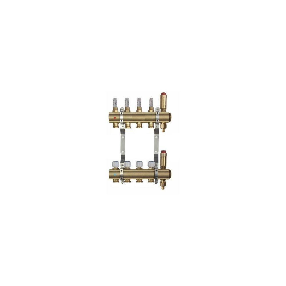 Rozdzielacz do ogrzewania podłogowego QIK STANDARD 10-obieg. mosiądz GW 1'' x GZ 3/4'' + przepływomierz