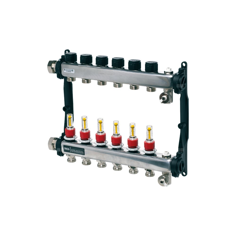 Rozdzielacz do ogrzewania podłogowego TECE floor 7-obieg. stal nierdzewna 1'' x eurocono 3/4'' + przepływomierz + zawór napełn/spust + odpowietrznik