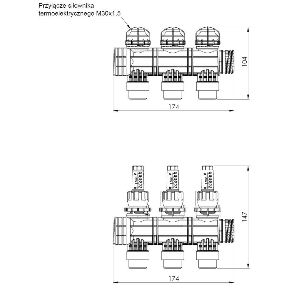 Stosowane w instalacjach płaszczyznowych grzewczych lub chłodzących.Montowany bezpośrednio do rozdzielacza ProCalida EF1 lub EF1 K.
