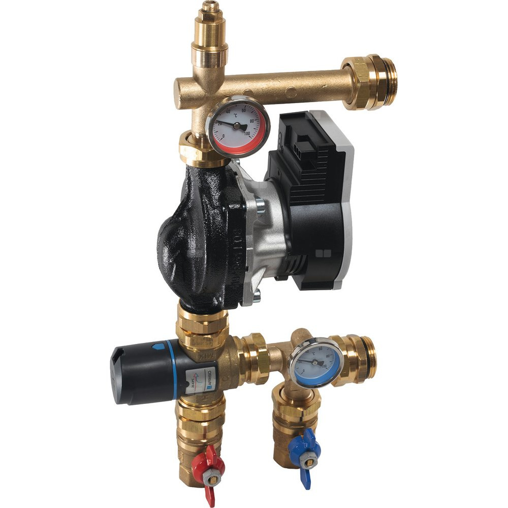 Zestaw mieszający z zaworem trójdrogowym termostatycznym, do rozdzielaczy mosiężnych oraz ze stali nierdzewnej