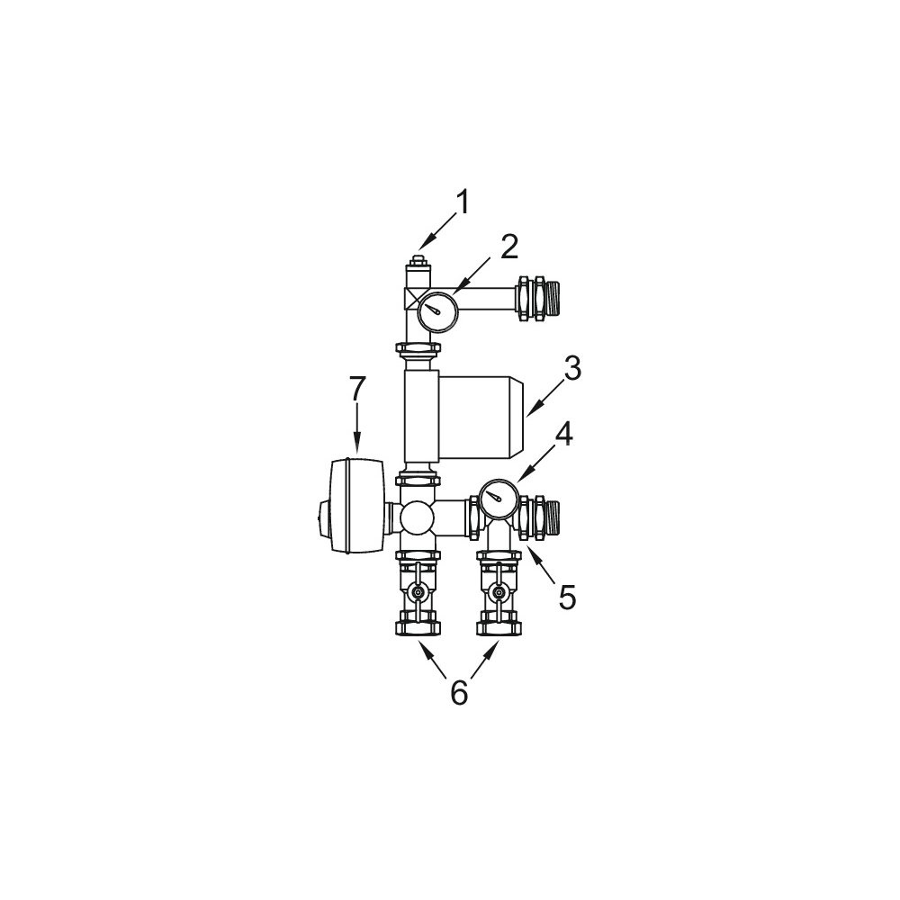 2 X zawory kulowe odcinające Rp 3/4" zabezpieczenie termiczne wyłączające pompę w przypadku gdy temperatura po zmieszaniu przekroczy 55-60 °C